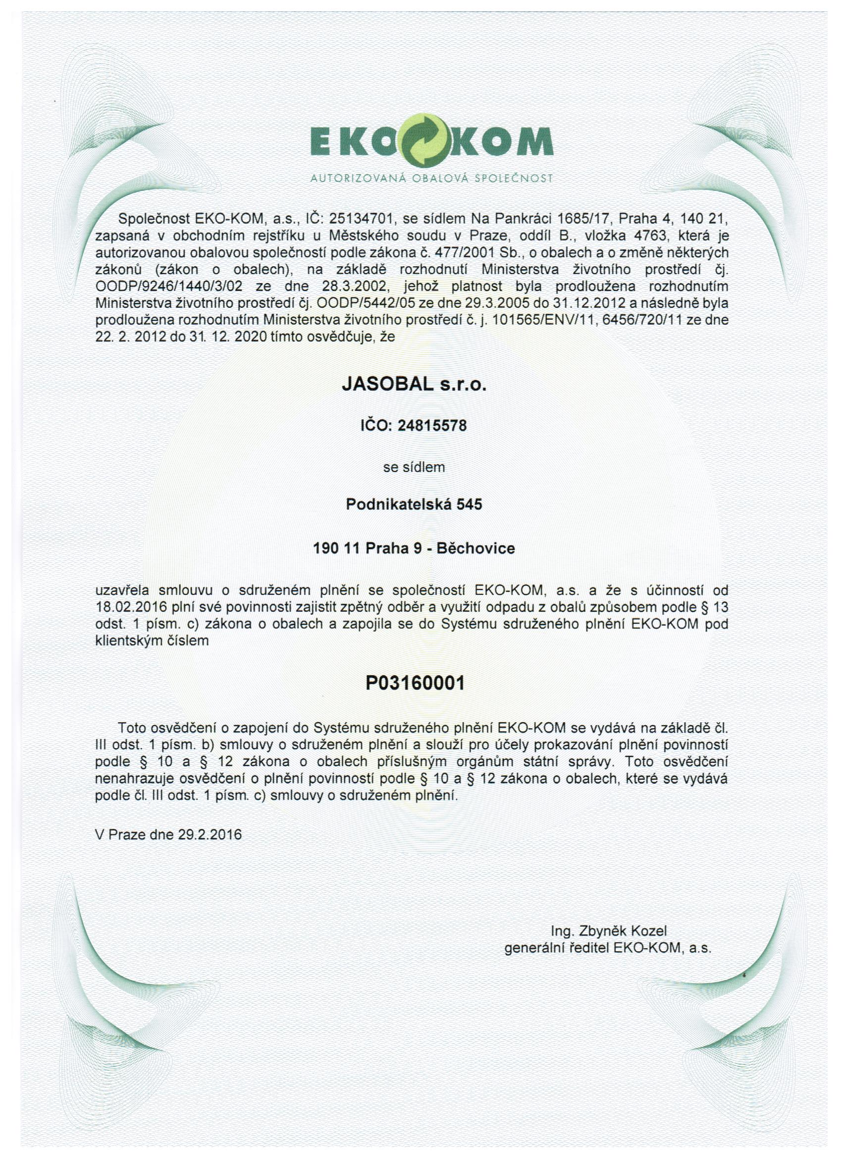 certifikát eko-kom