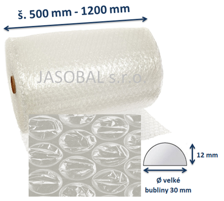 Bublinková folie dvouvrstvá s velkými bublinami, Ø bublinky 30mm